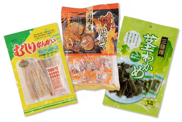 当社は昭和63年の創業以来、乾燥珍味では、むしりかんかい、鮭スティック、焼きほたてなどを中心に製造販売しております。